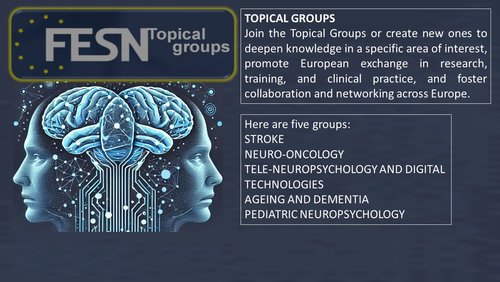 FESN would like to encourage their members to join Topical Groups to facilitate exchange and research within and between the different European Societies of Neuropsychology. We want to bring together people who want to share a common interest. The puropose of the groups is to increase knowledge about an area of interest; to promote European exchange in research, training and clinical practice; and to encourage European collaboration and networking.